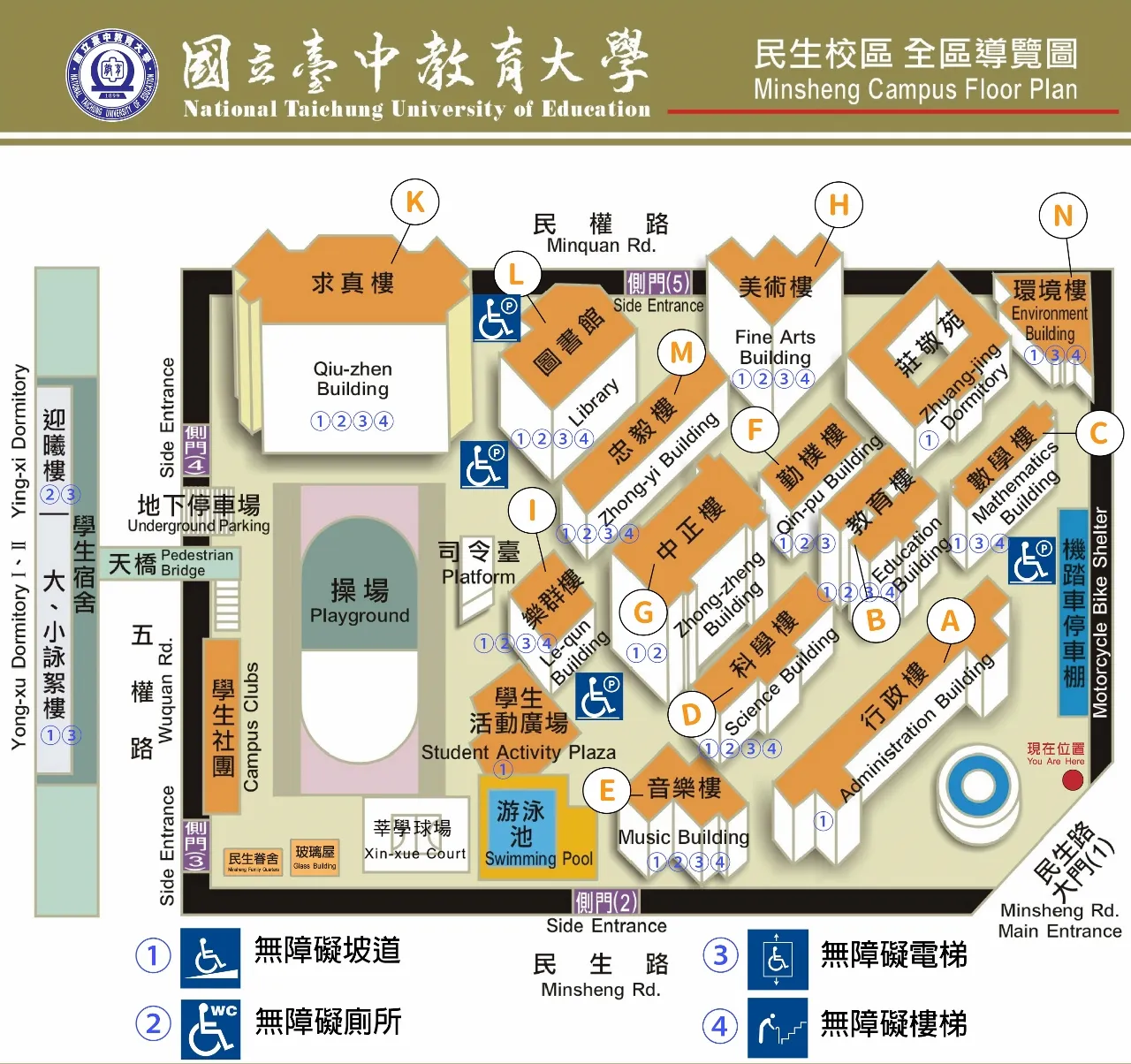 民生校區無障礙設施平面圖